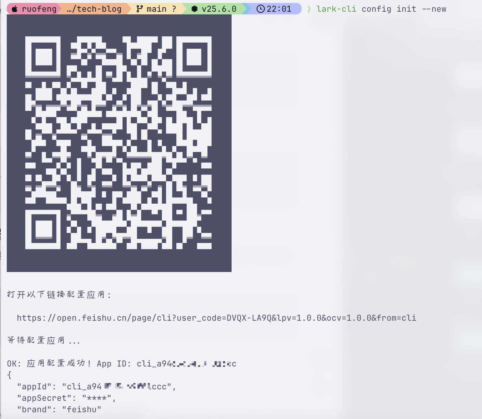 lark-cli config init --new