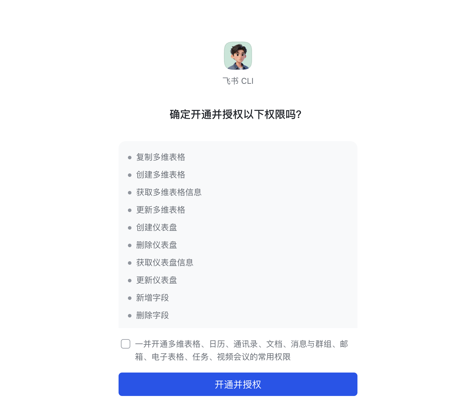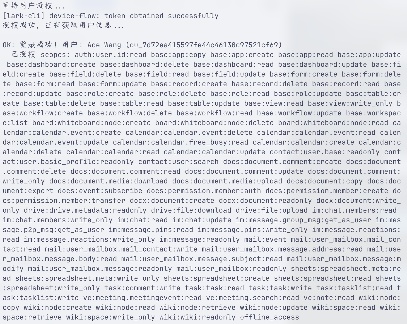 lark-cli auth login --recommend