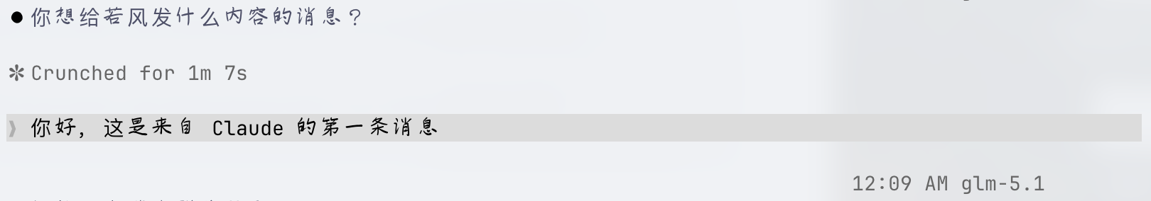 - 内容:@若风 你好,这是来自 Claude 的第一条消息